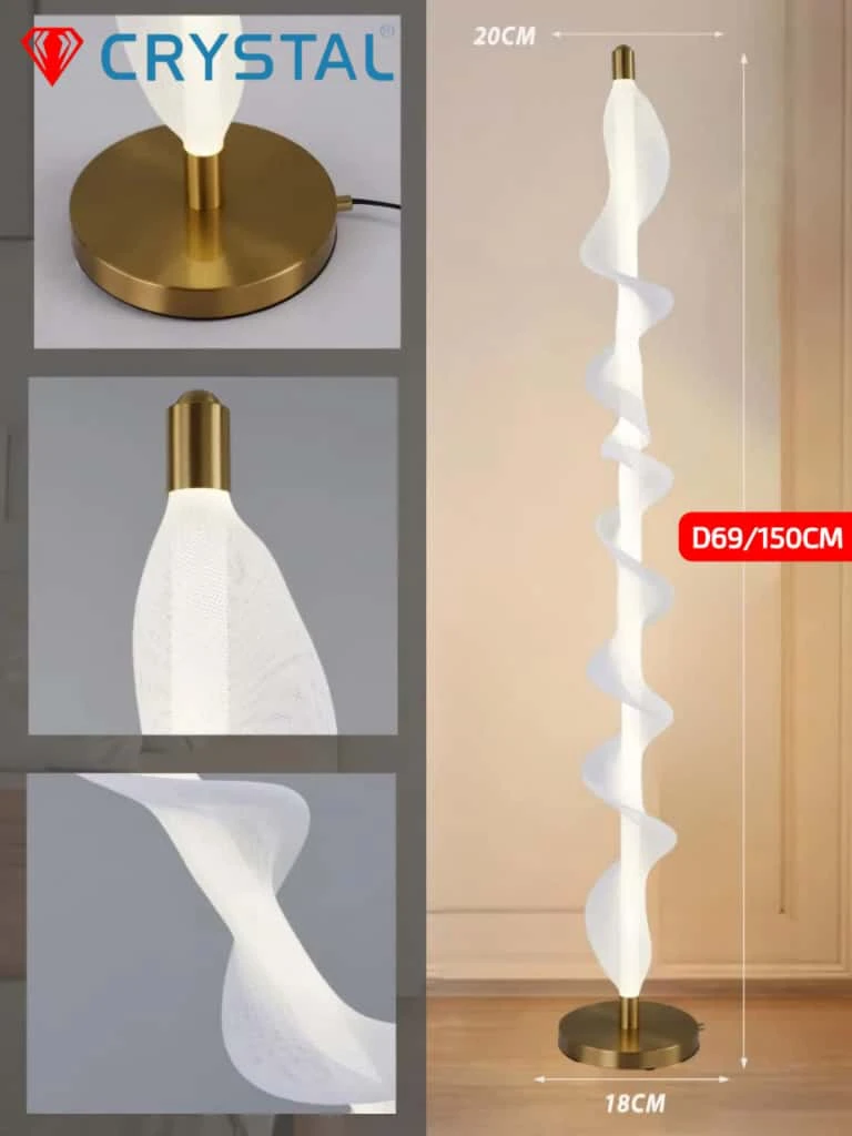 اضاءة ارضية كريستالية بتصميم حلزوني D69/150CM