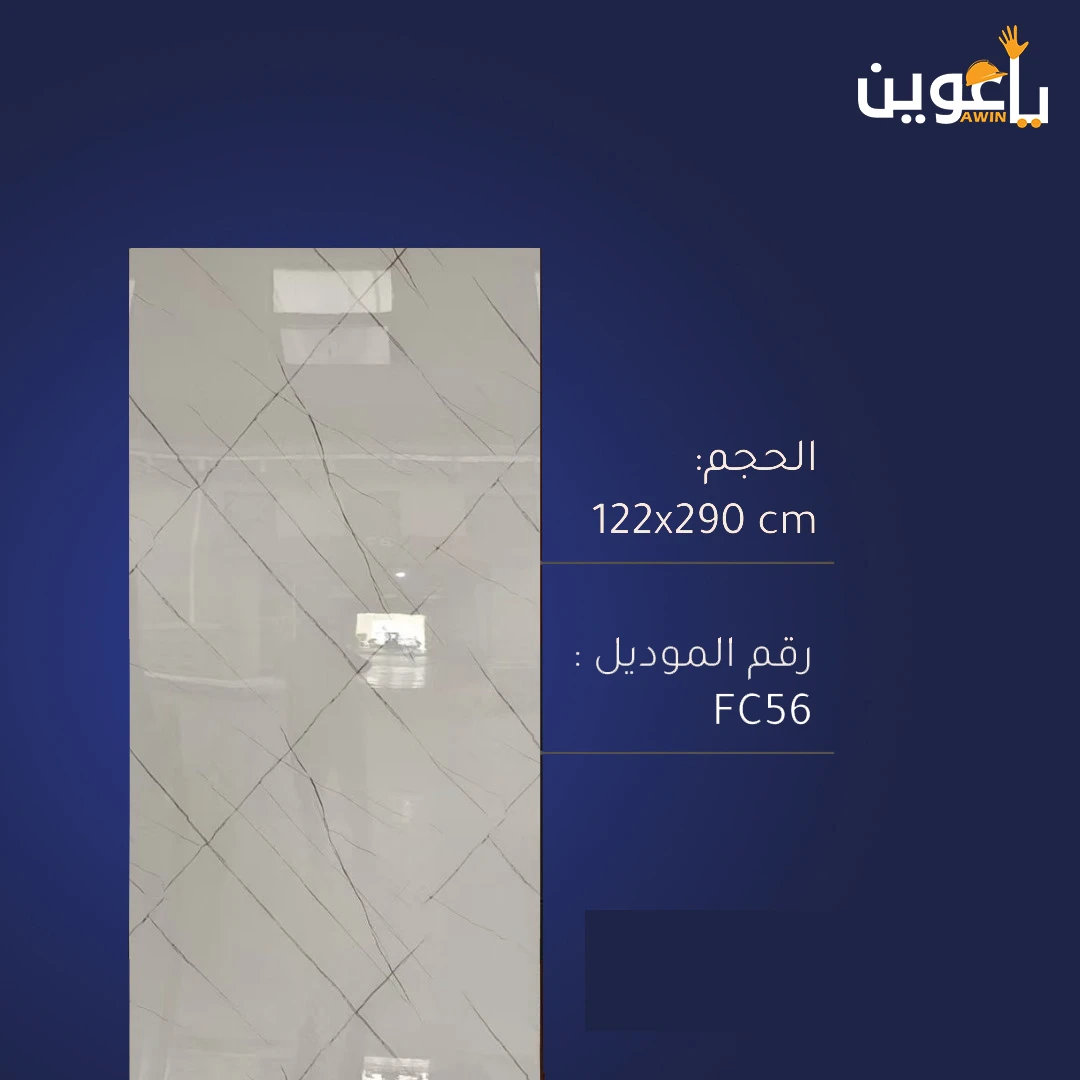ألواح بديل الرخام اللامعة، مقاس 122 × 290 سم، لون ابيض خطوط رمادي