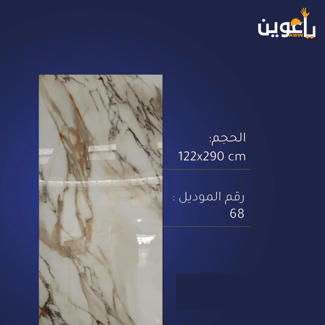 ألواح بديل الرخام اللامعة، مقاس 122 × 290 سم، لون ابيض مرقمش رمادي وبني