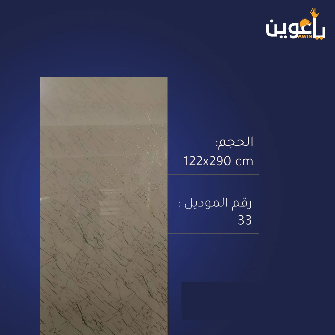 ألواح بديل الرخام اللامعة، مقاس 122 × 290 سم، لون بني غامخ خطوط رمادي