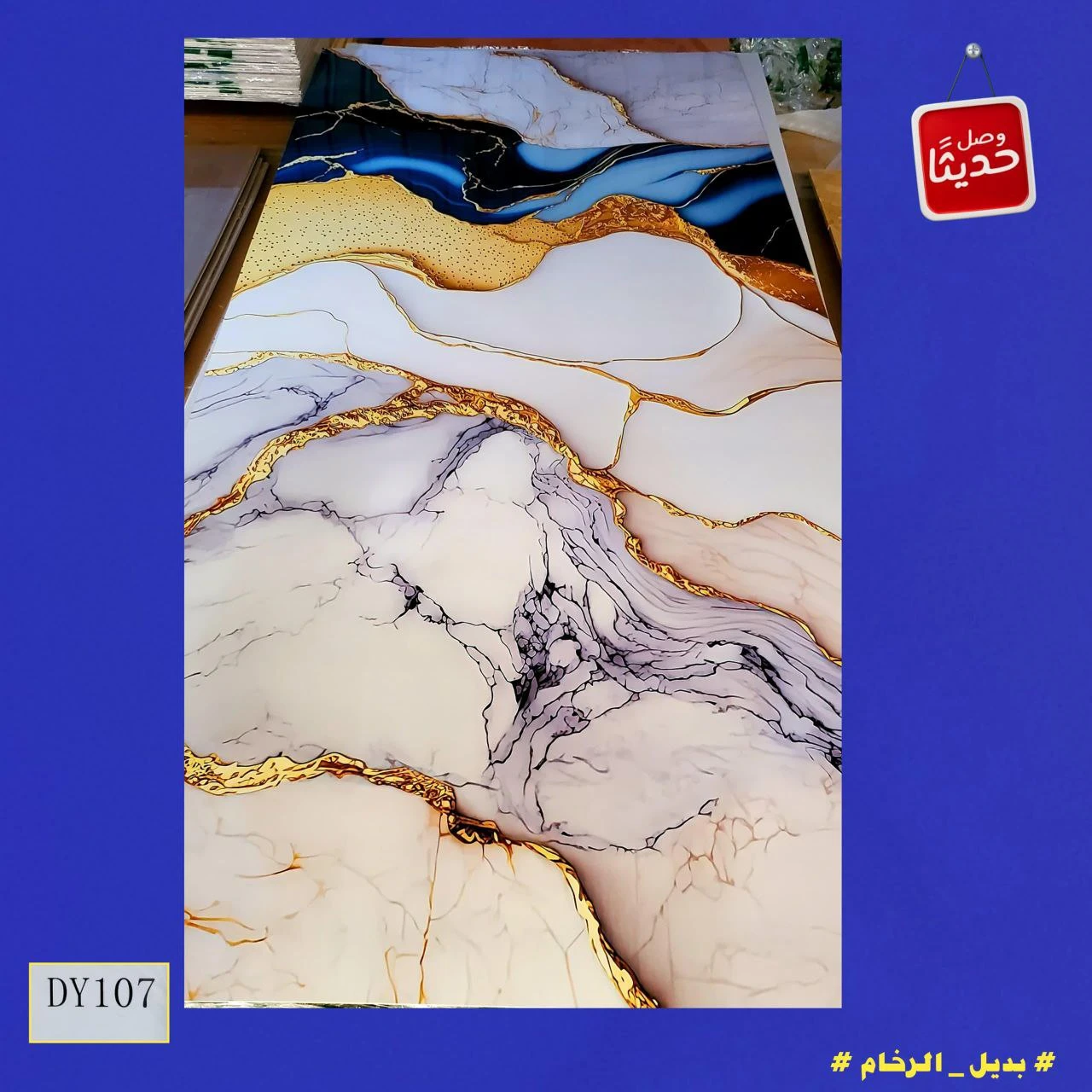 بديل رخام فاخر أبيض بعروق سوداء وذهبية بارزة 280*120