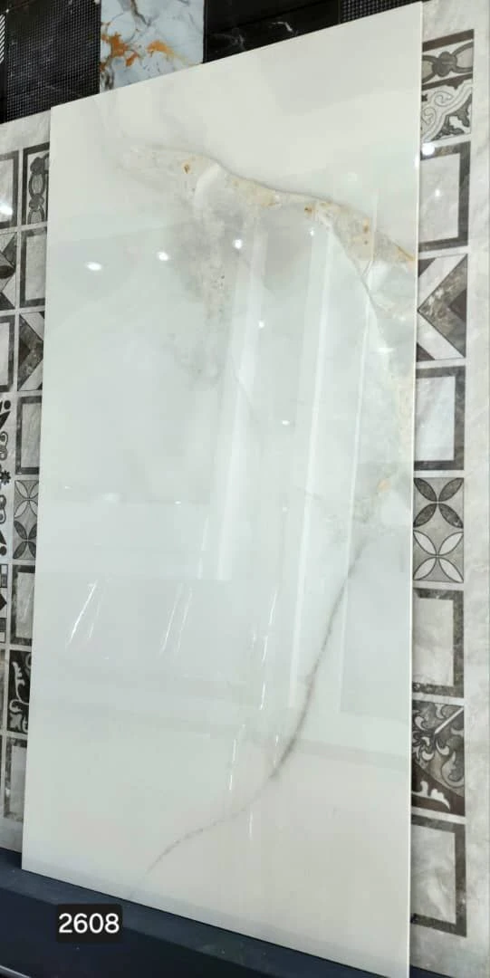 بورسلين رخامي أبيض بـعروق رمادية وذهبية موديل 2608