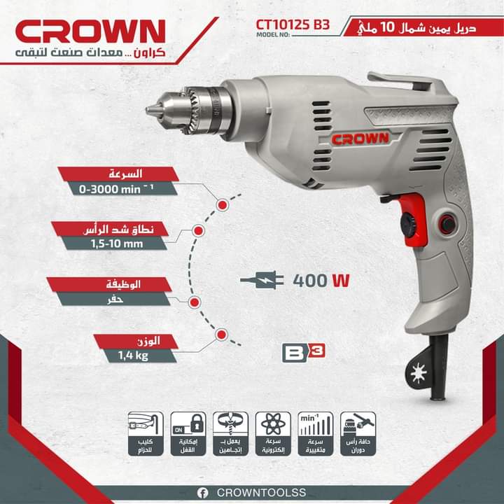 دريل كراون يمين شمال 6 ملي 300 وات CT10125 B3