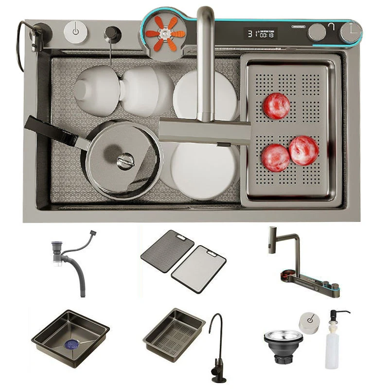 حوض رخام استيل متكامل حديث مربع نوفان مطبخ ذكي بالشكل الجديد رقم 7545