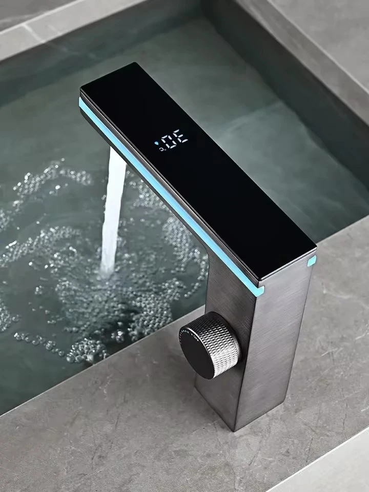 خلاط مغسلة رقمي ذكي اسود مطفي