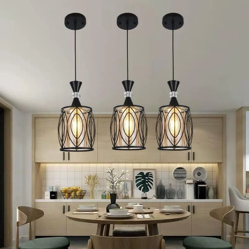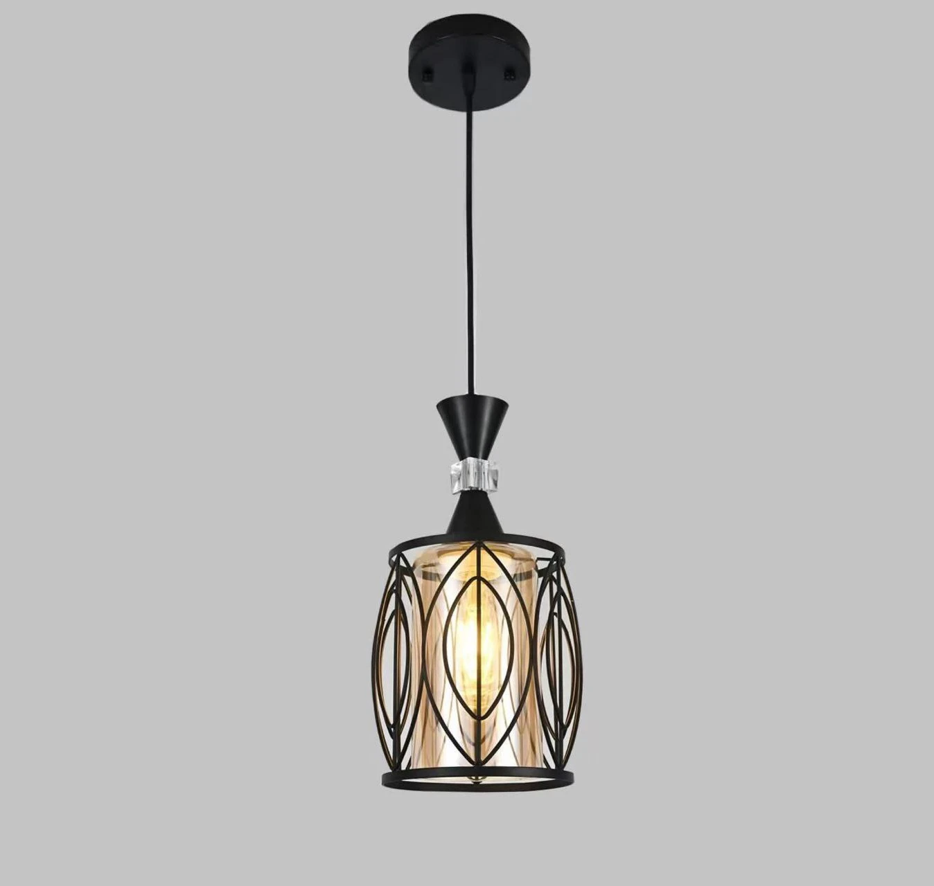 نجفة معلق بتصميم معدني أسود مزخرف وكريستال