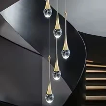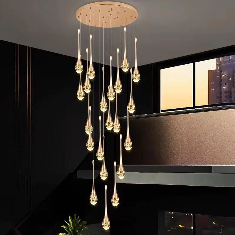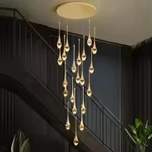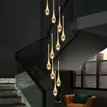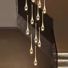 نجفة طويلة بتصميم قطرات المطر الذهبية والكريستالية