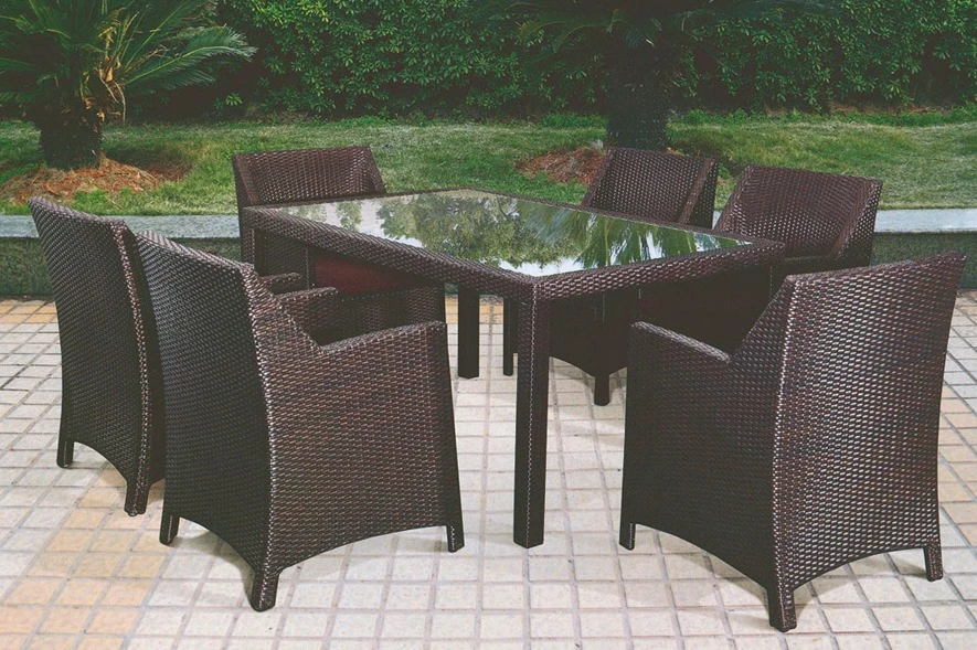 طقم طعام خارجي من الخيزران الصناعي مع طاولة زجاجية و 6 كراسي